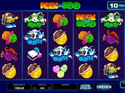 Bereits der Name Peek A Boo deutet an, dass es sich um einen Spielautomaten mit Gruselatmosphäre handelt. Allerdings nimmt das Slot-Spiel diese Aufgabe weniger ernst. Es handelt sich vielmehr um einen Halloween Automaten, der sich selber auf die Schippe nimmt. Der Hintergrund ist schlicht in Blau gehalten und auf eine Musik wurde verzichtet. Dafür sind die typischen Automatentöne zu vernehmen. Die Gewinnsummen können sich, sofern die richtigen Bilder vereint werden, aber sehen lassen.