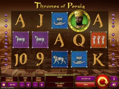 Thrones of Persia ist ein Tom Horn Spiel. Wem dieser Software-Entwickler nichts sagt, sollte sich den Namen merken. Denn in kurzer Zeit hat sich Tom Horn einen Namen in der Branche gemacht. Kein Wunder, denn die Gestaltung des Spielautomaten ist hochklassig. Der Hintergrund zeigt eine persische Stadt. Die Musik ist arabisch angehaucht. Die Darstellung der Symbole ist ansprechend und freilich können auch die Gewinnsummen eine überaus anständige Wertigkeit annehmen.