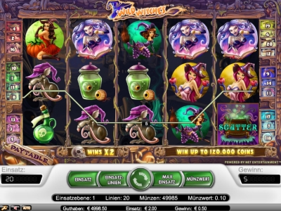 Melde dich jetzt im Casinoeuro an und lass dich vom Automatenspiel Wild Witches verzaubern! Zahlreiche Features und hilfreiche Sondersymbole erwarten dich, welche dir das Gewinnen erheblich erleichtern werden. So kannst du beispielsweise viele Freispiele erhalten, wenn dir das heißbegehrte Scattersymbol mindestens drei Mal auf einer Gewinnreihe erscheint. Nutze zunächst den kostenlosen Spielgeldmodus des Spitzencasinos, um dich ganz risikofrei mit dem spannenden Spielautomaten Wild Witches vertraut zu machen! Lass dich von den gigantischen Gewinnmöglichkeiten überzeugen, bevor du deinen Kontostand im späteren Echtgeldmodus rasant in die Höhe treibst.
